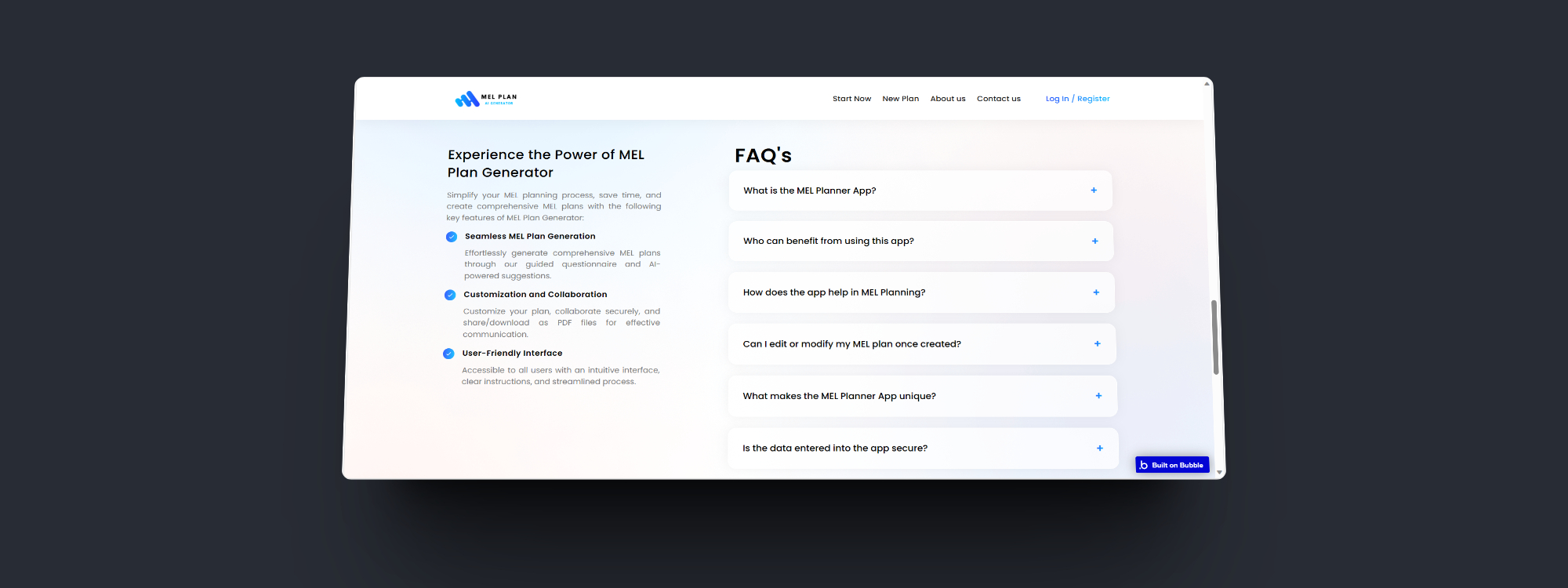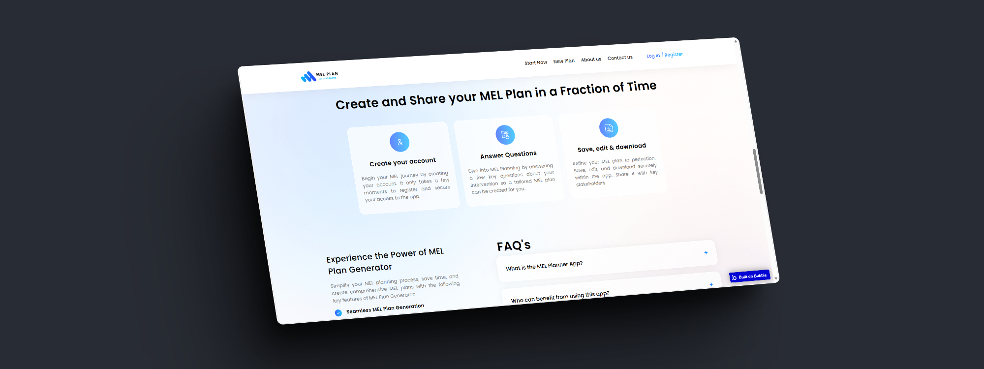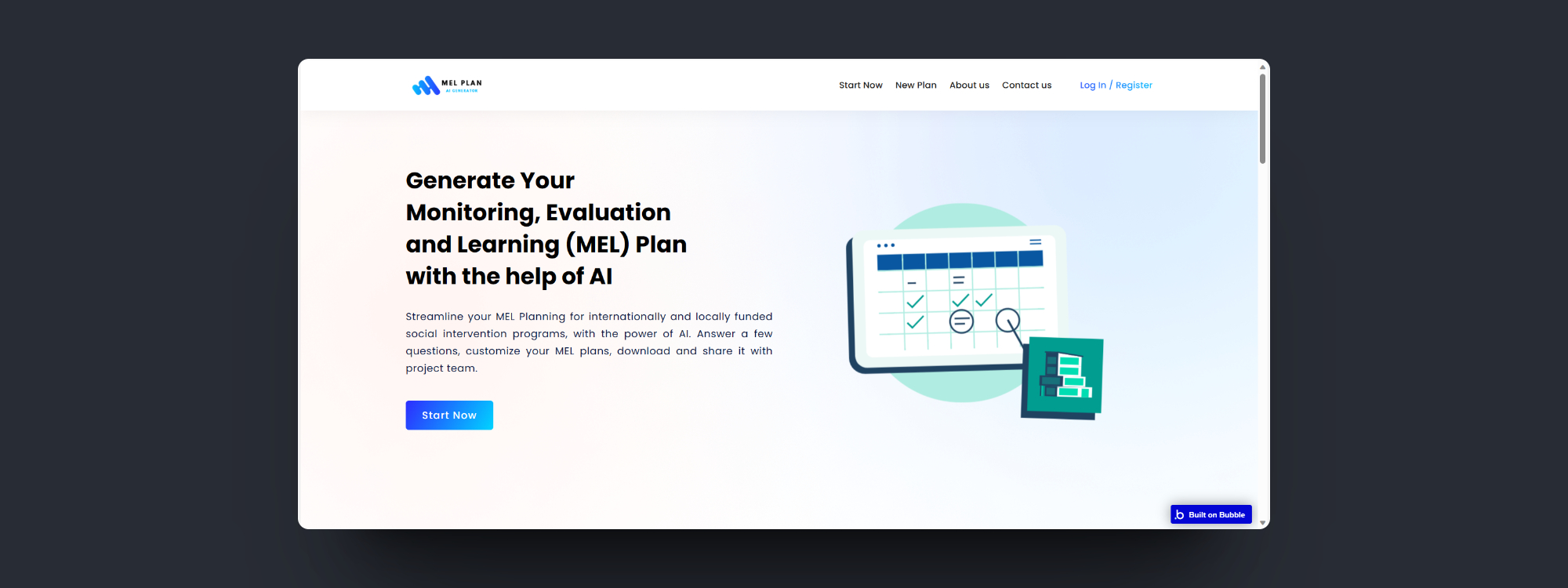 The MEL Plan Generator is an AI tool for generating monitoring, evaluation, and learning plans for intervention programs. The MEL Plan Generator helps specialists with complex goal setting, country-specific customization, sector-specific frameworks, strategic approach selection, target population definition, objective setting, activity planning, outcome and output definition, timeline management, Theory of Change development, Logical Framework design, indicator identification, measurement methodology selection, baseline and target setting, and more.