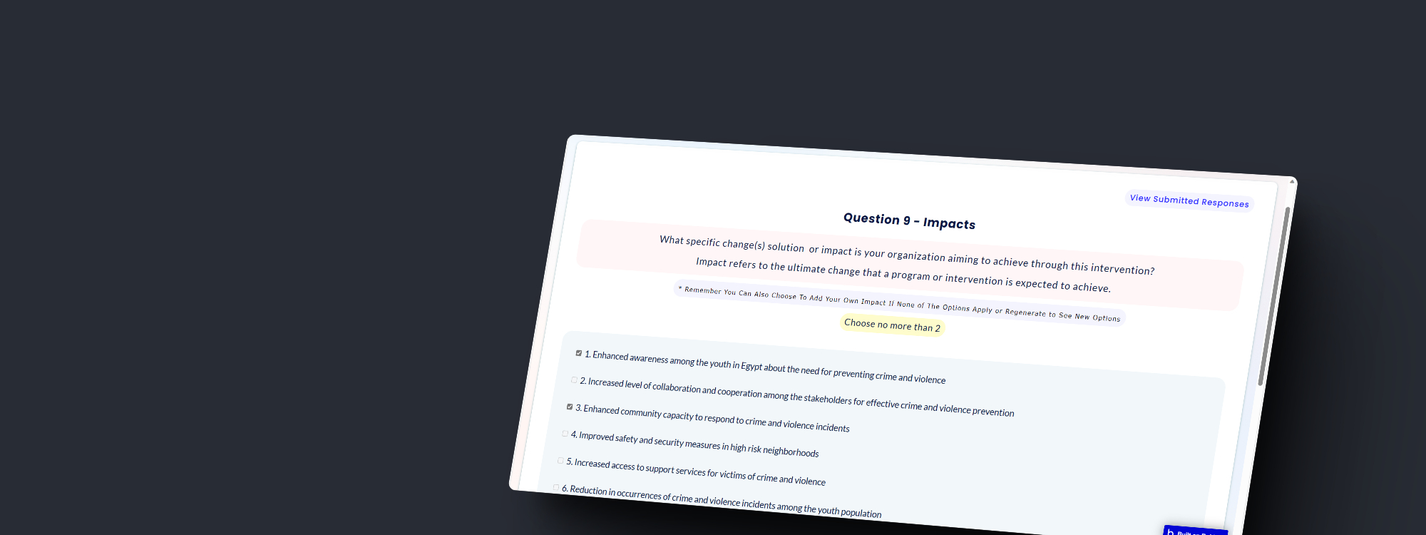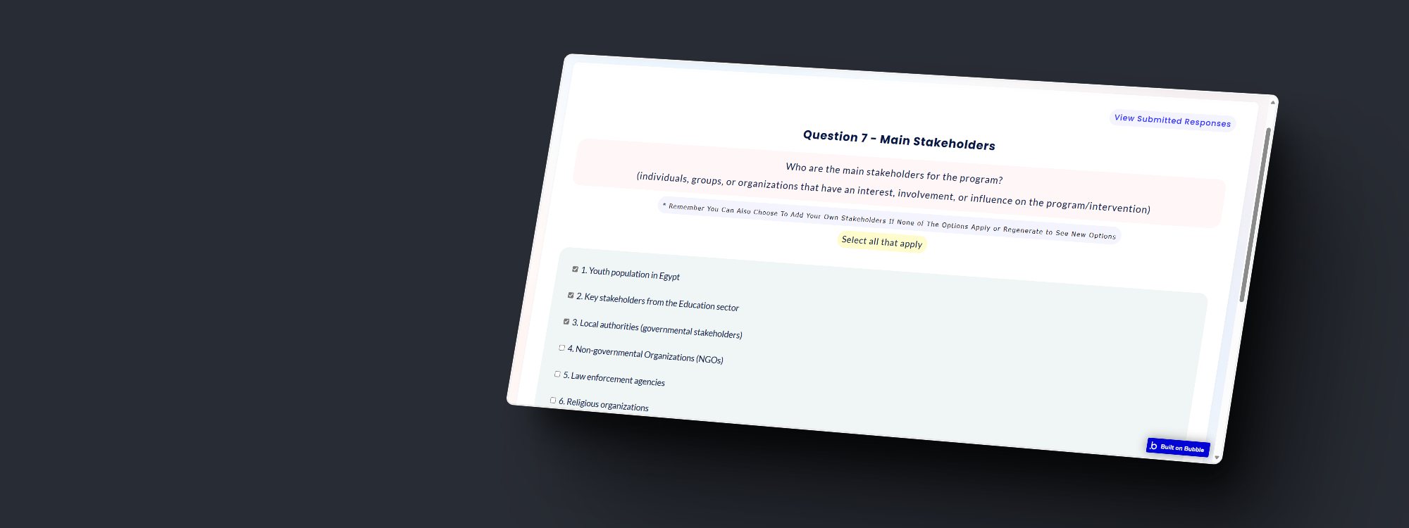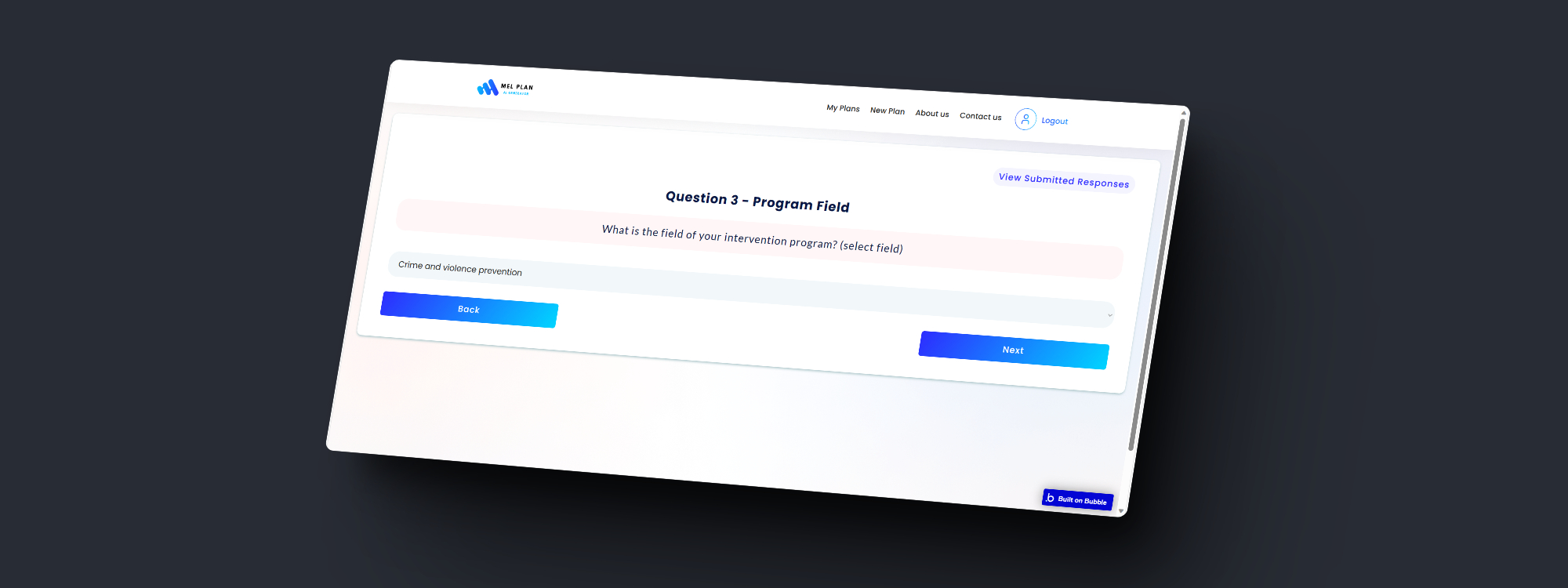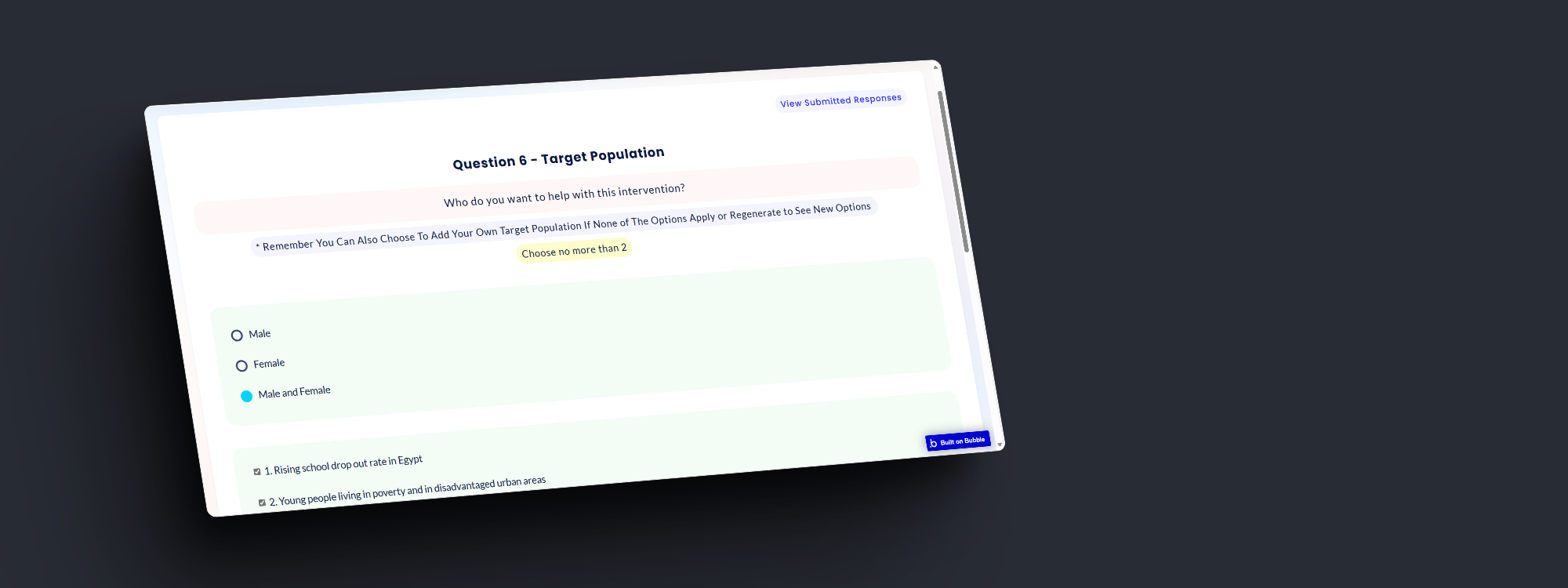 - Answer multiple‑choice questions about your intervention—options adapt dynamically as you go.
