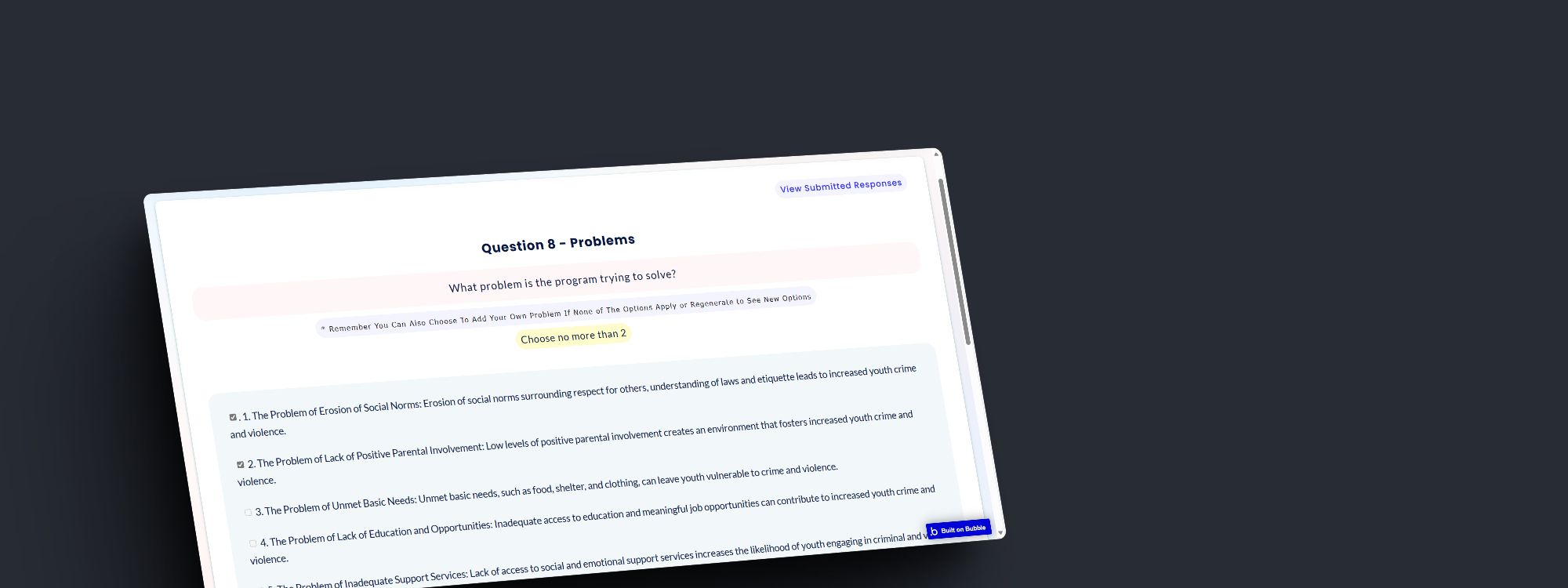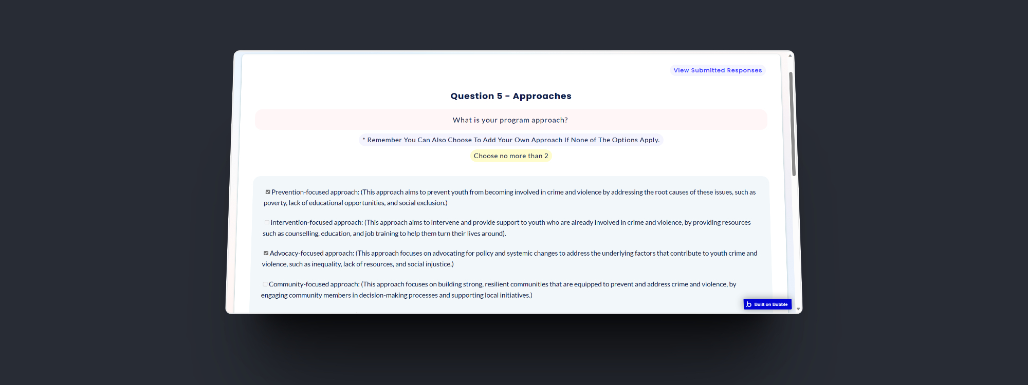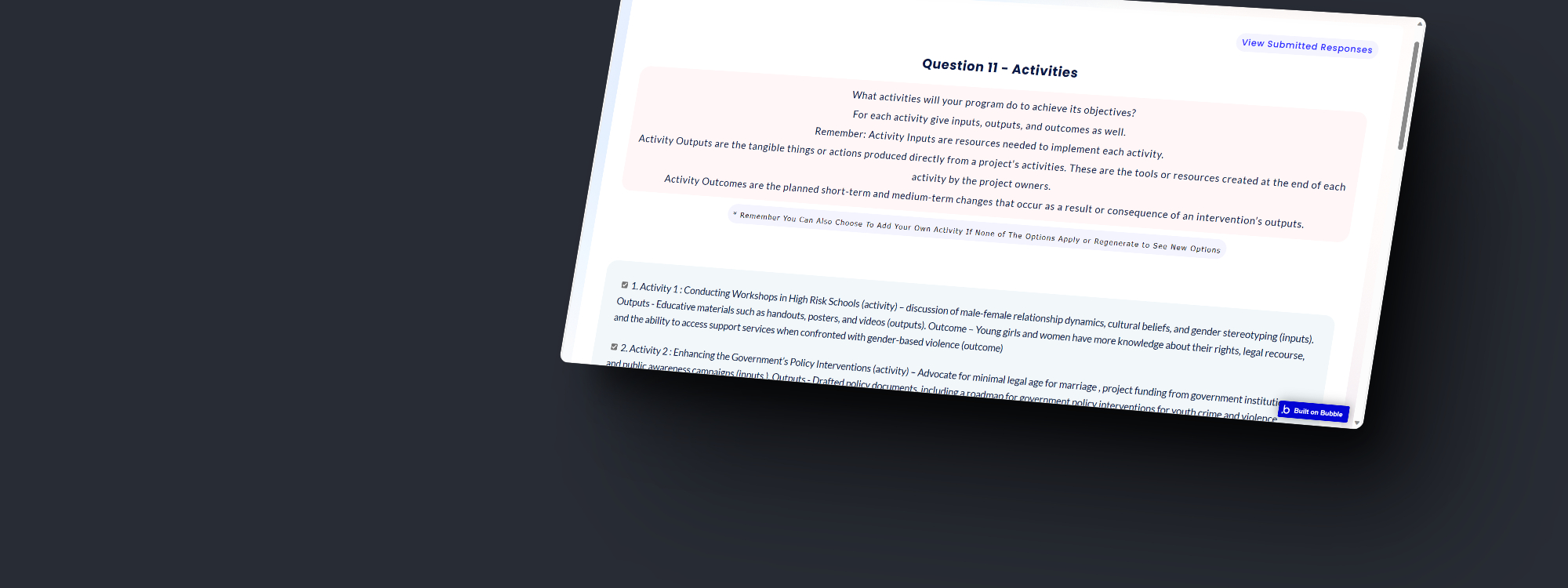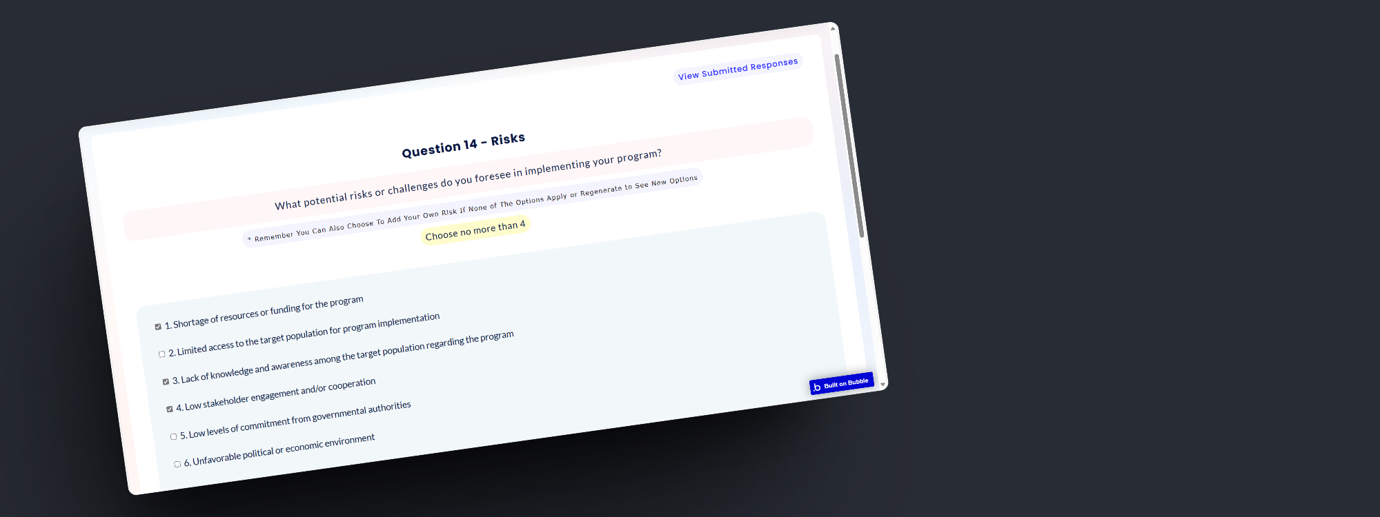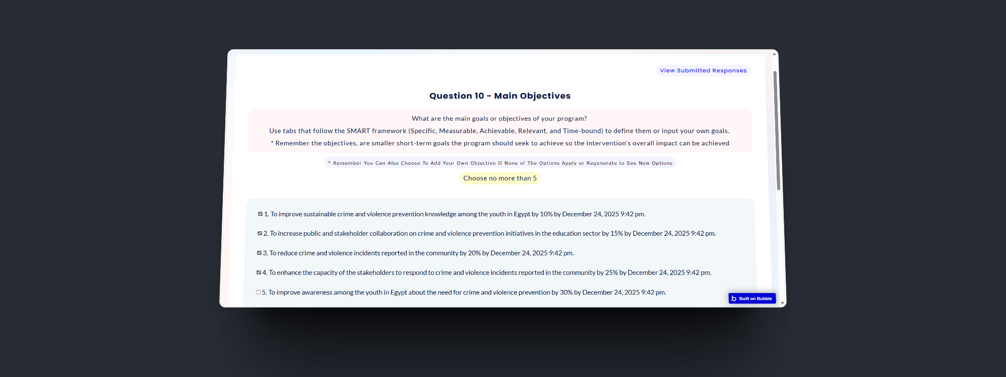 - Answer multiple‑choice questions about your intervention—options adapt dynamically as you go.
